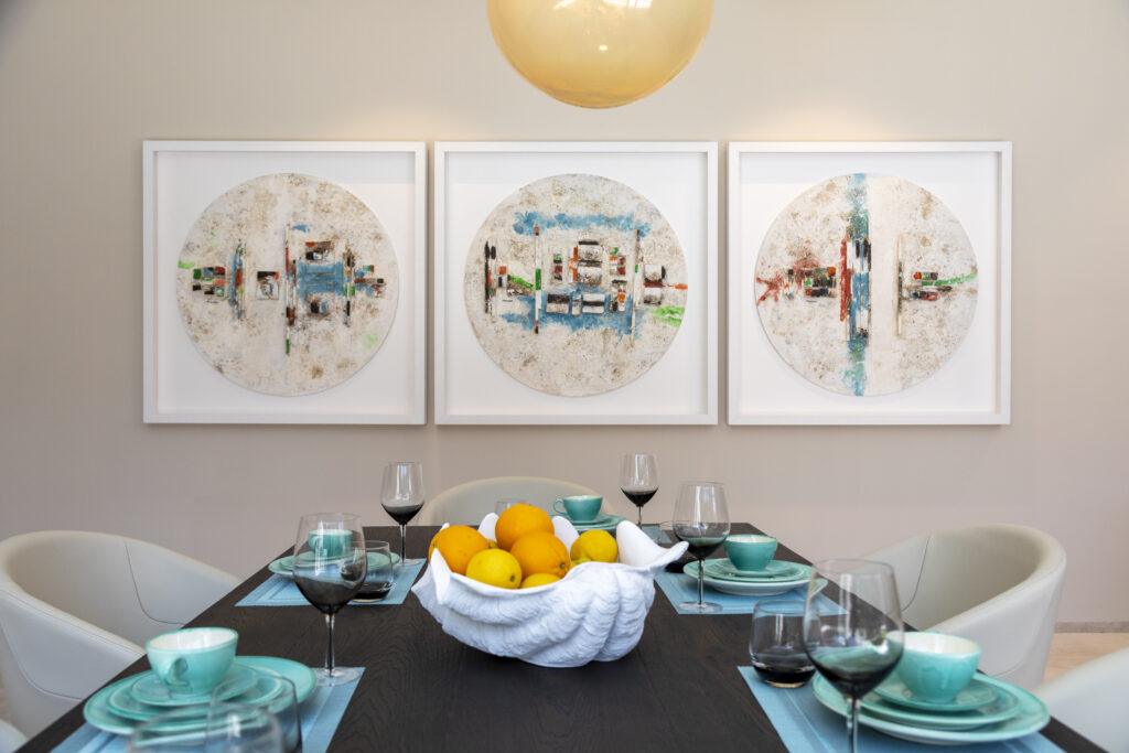 Jedes Möbelstück, jede Lampe, jeder Vorhang, jedes Design-Accessoire – alles wird in langen und häufigen Design-Sitzungen von unseren „Spürnasen“ auf Messen in Mailand und anderswo gesucht und ausgewählt. Sogar das Küchengeschirr ist ein kleines mediterranes Design-Highlight. Kein Bett ist gleich wie das andere. Viele Möbel stammen aus kleinen italienischen Designer-Boutiquen, deren Namen Sie vermutlich noch nie gehört haben. Insgesamt mögen wir kein „beige“, sondern lebensfrohe sommerliche Farben.