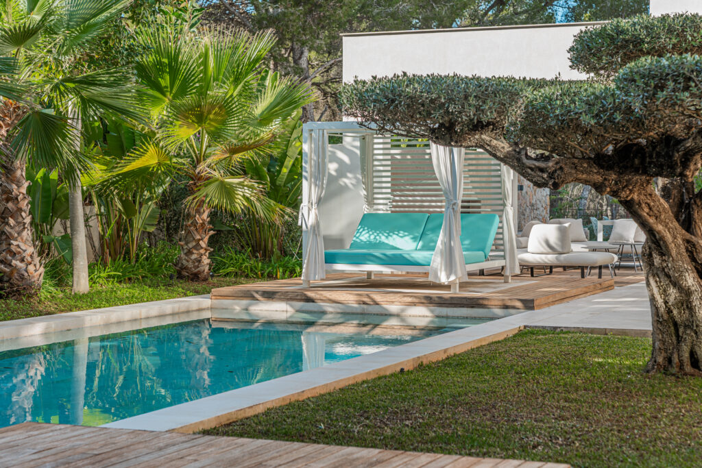 Die Villa DOLCE VITA Familien-Oase befindet sich in Santa Ponsa auf einem 1.125 m² großen Grundstück, das direkt an eine unverbaubare Naturzone grenzt. Sie liegt nur wenige Gehminuten zu einem tollen Strand entfernt, und innerhalb von zwei Kilometern gibt es jede Menge Cafés, Restaurants, Supermärkte, Boutiquen, Märkte, Banken. Palma ist ebenfalls nur 15 Minuten entfernt. Dieses exklusive Anwesen, voll ausgestattet, möbliert und bezugsfertig, bietet auf 600 m² jeglichen Komfort, um „ruckzuck zu entschleunigen“.